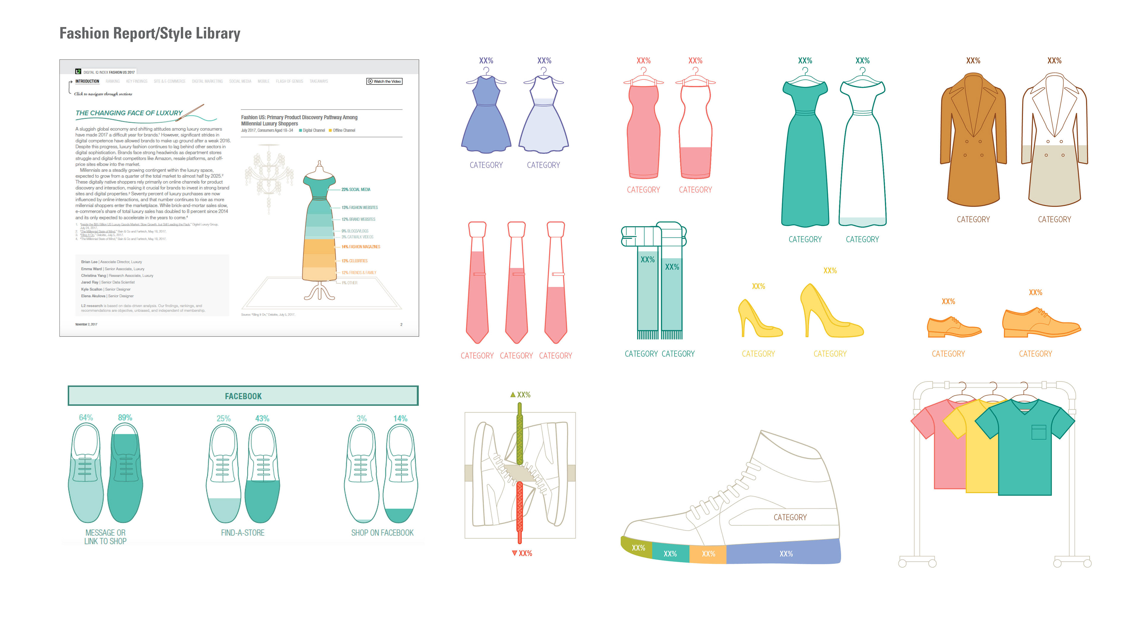 Examples of illustrative stylings I'd create in preparation for varying sector research